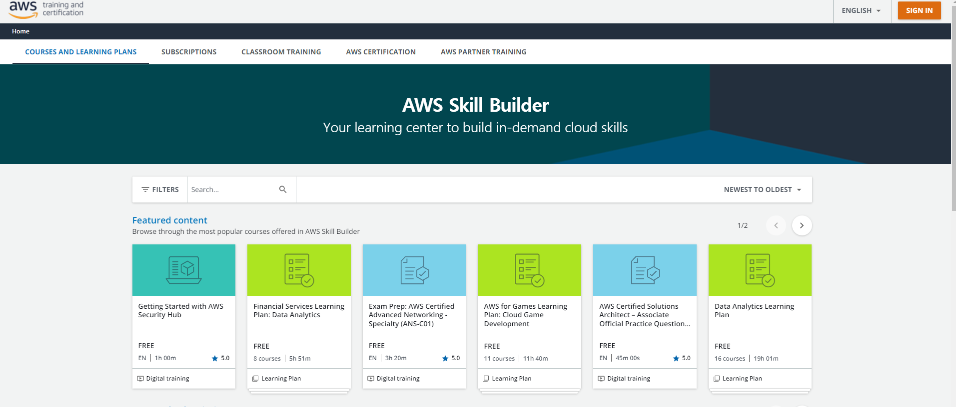 그리고 자격시험을 준비하며 가장큰 도움이 된것은 아무래도 공식사이트의 Skill Builer 이다 URL을 먼저 제공하자면