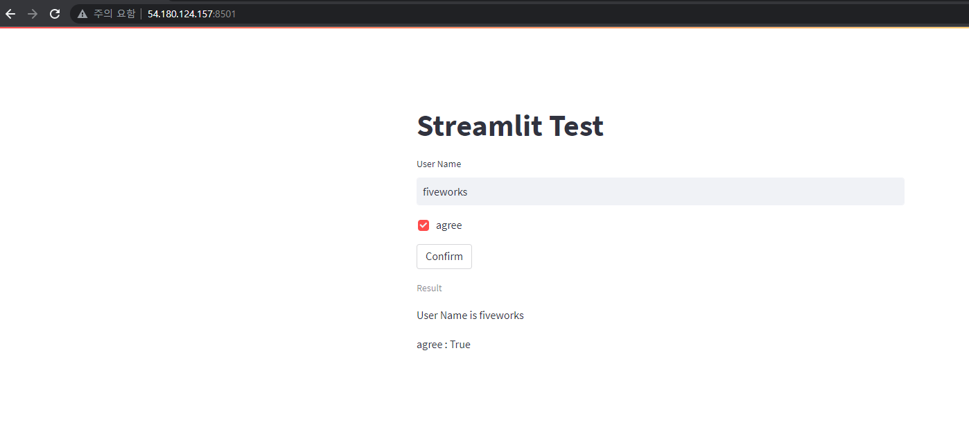 - streamlit 은 8501번 포트를 사용한다.