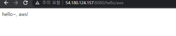 - http://{복사한 ip}:8080/hello/aws
