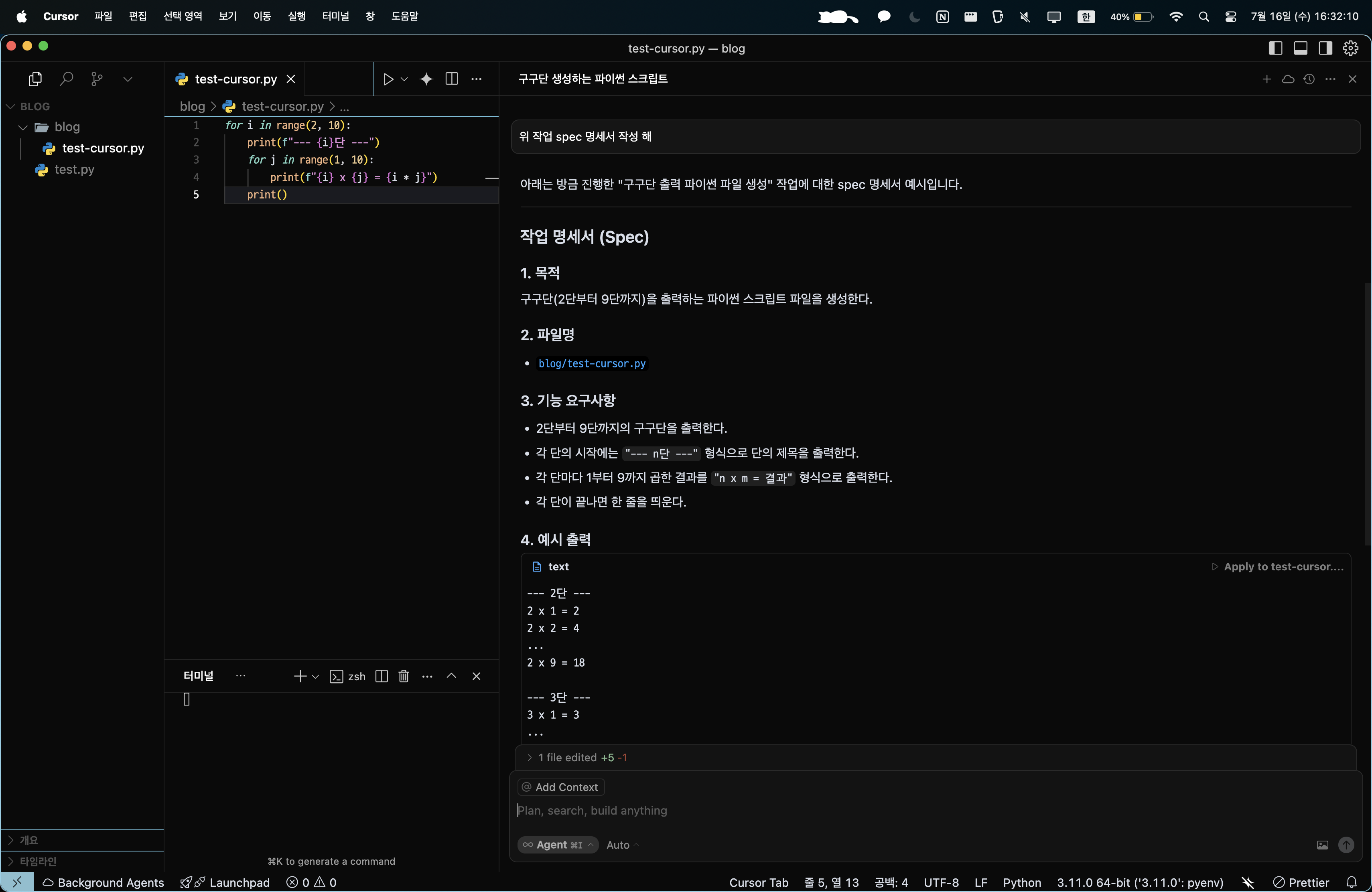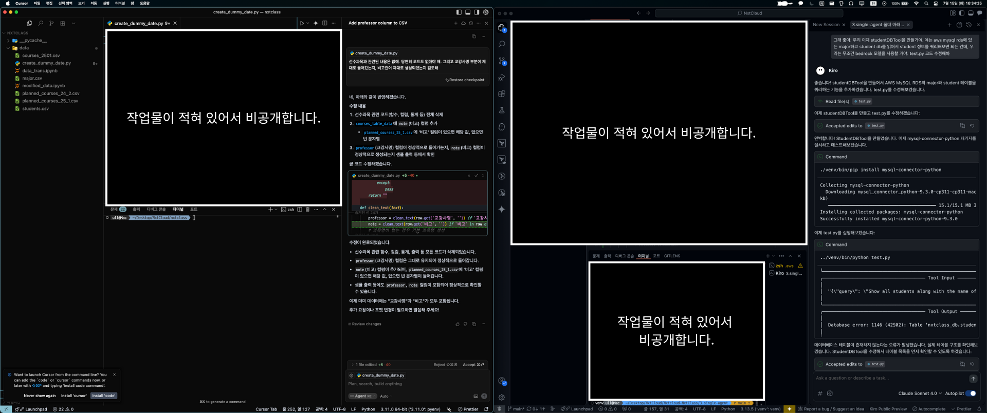- Cursor에서는 실행해보라고 해도 직접 진행해보라고 유도하거나 실행해볼까요? 하면서 바로 실행하는 것을 확인할 수 있었습니다.