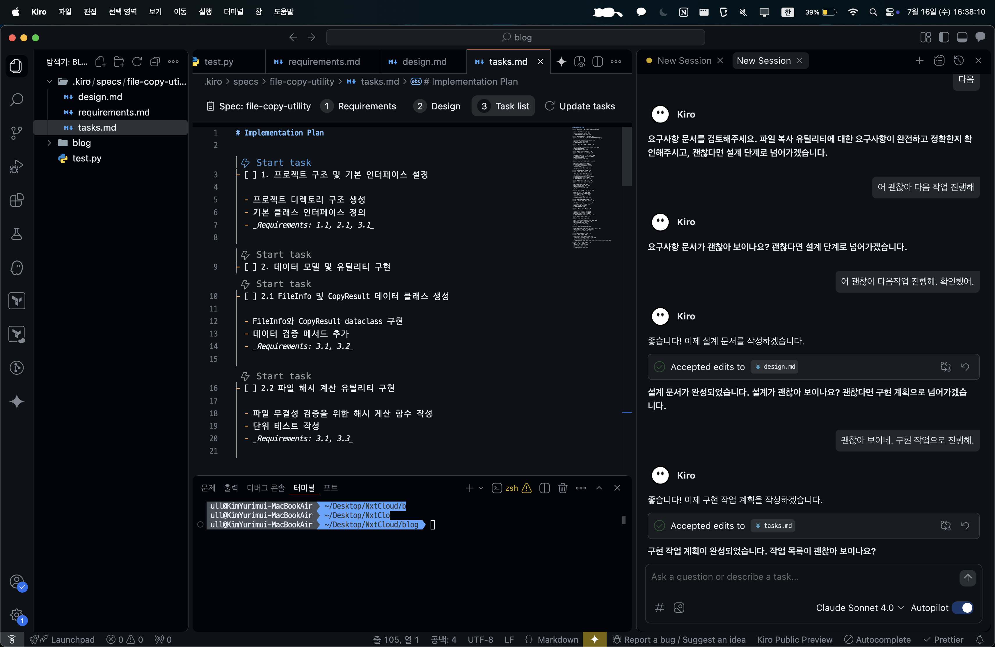 - Kiro가 접근할 수 있는 터미널이 존재하기 때문에 실행과 테스트가 용이함