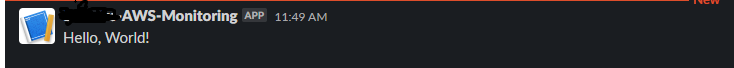 Slack을 본다면 아래와 같이 hello world가 나온것을 확인 할 수 있다.