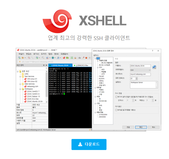 x-shell 다운로드 링크는 https://www.netsarang.com/ko/free-for-home-school/ 인데,
