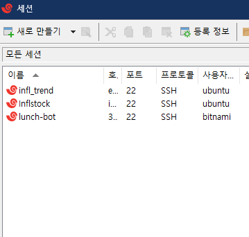 그러면 새 세션 등록 정보가 뜨는데