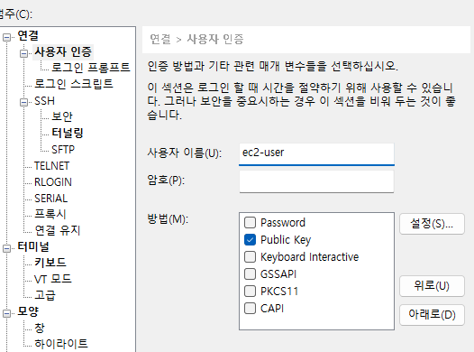 아마존 리눅스는 ec2-user 우분투는 ubuntu 등의 사용자 아이디를 넣고 각자 키를 등록한다.