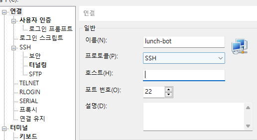 여기서 이름은 자기가 원하는 대로 호스트는 인스턴스의 public ip를 입력한다.