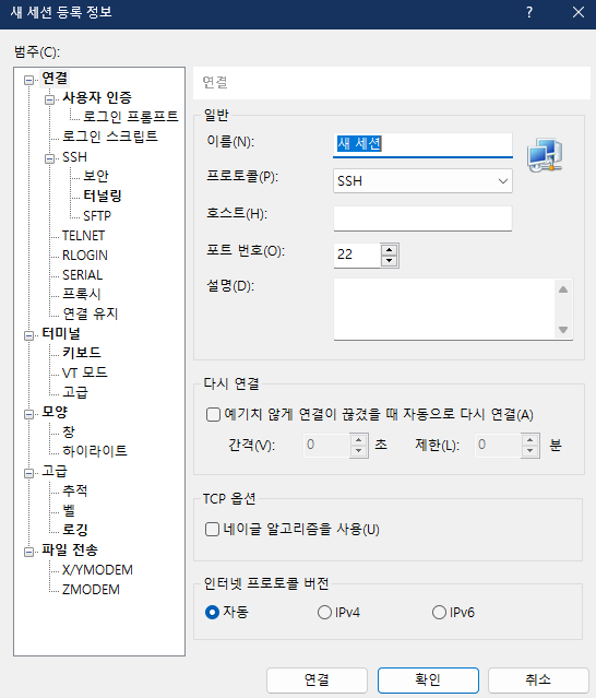 해당 왼쪽의 다운로드 버튼을 누르고 설치가 완료되면, x-shell이 실행되는데 세션 창에서 새로 만들기를 누른다.