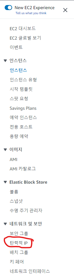 먼저, Ec2 인스턴스 메뉴에서 왼쪽을 보면