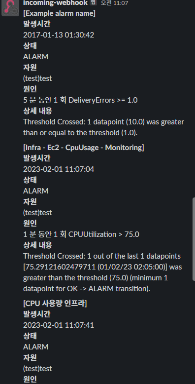 2023.01.27 - [AWS/기능 소개 및 에러처리] - AWS Slack으로 Monitoring 중 invaild_payload 오류 해결법(Window)