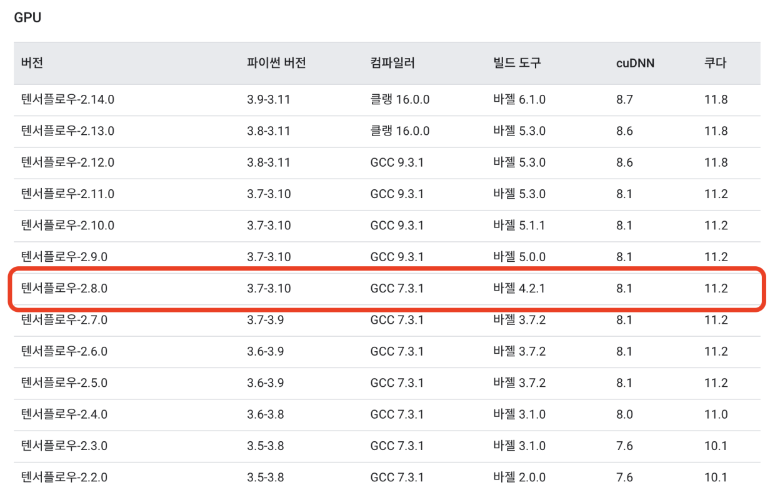 아래 명령어를 통해 모든 라이브러리와 호환되는 Tensorflow 2.8.0 버전 설치