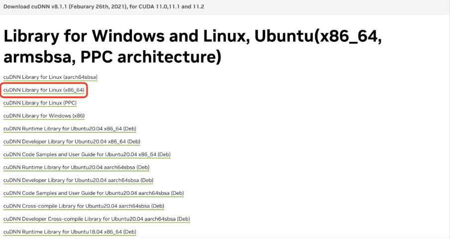$ tar –xzvf cudnn-11.2-linux-x64-v8.1.1.33.tgz