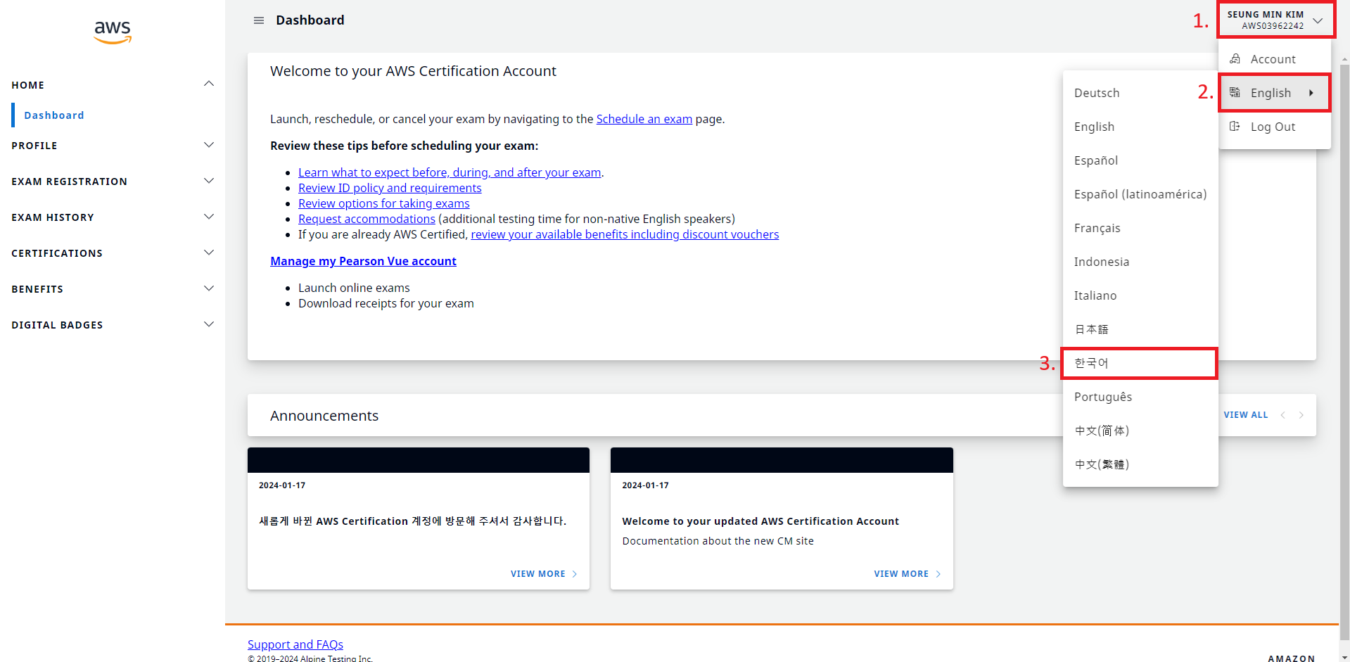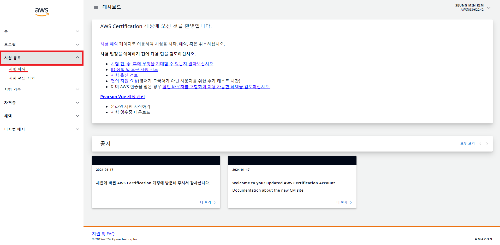 최근에 AWS 자격시험 사이트의 UI가 바뀌어 새롭게 가이드를 작성해 보려고 한다.
