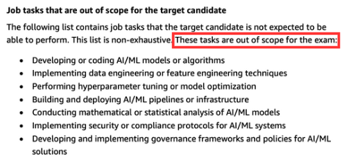 단순 문제암기만으로 이번 자격증을 획득하려고 하더라도 아직 AI Practitioner의 기출문제를 구할 수 없는 상황입니다. 이번만큼은 정공법으로 시험 출제 범위를 공부하는 방법밖에 없습니다.
