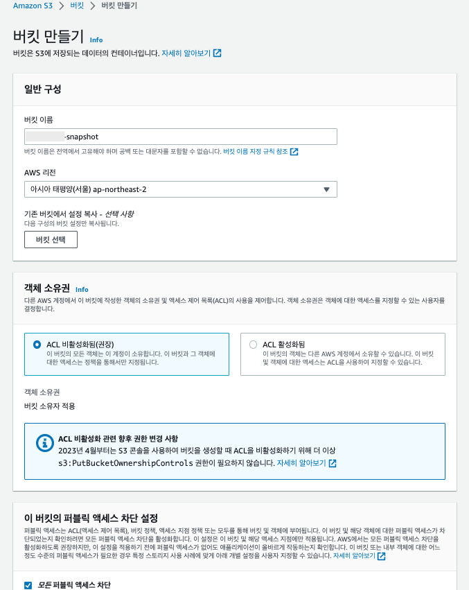 이제 스냅샷을 저장해놓을 버킷을 생성해보자.