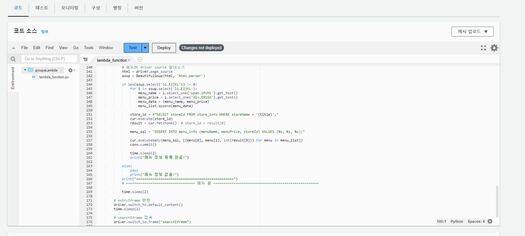 크롤링 코드는 aws 람다의 트리거로 주기적 크롤링을 설정했다.