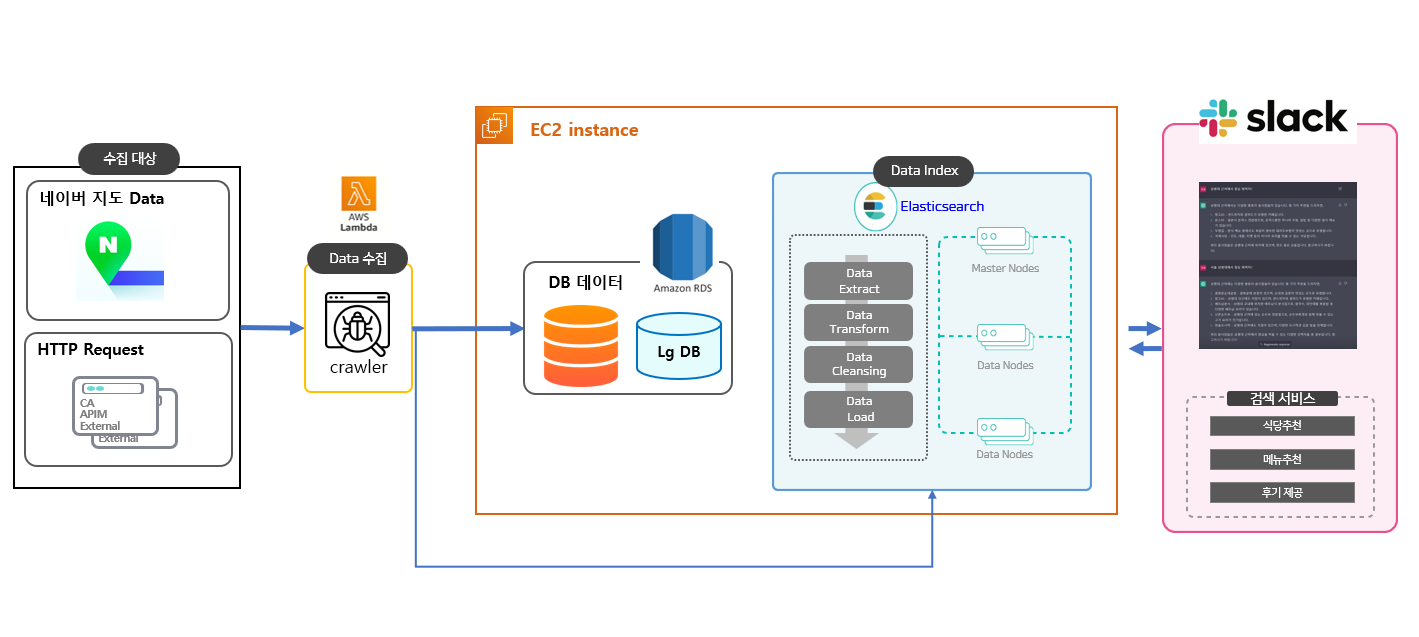 어떤가? 점심을 고민할 필요가 조금은 없어지지 않았나? 앞으로는 다양하게 회식봇 의류추천 강의추천등을 만들어보려고 한다. 마지막으로 내가 만든 봇의 구조도를 첨부하며 이번 포스팅을 마친다.